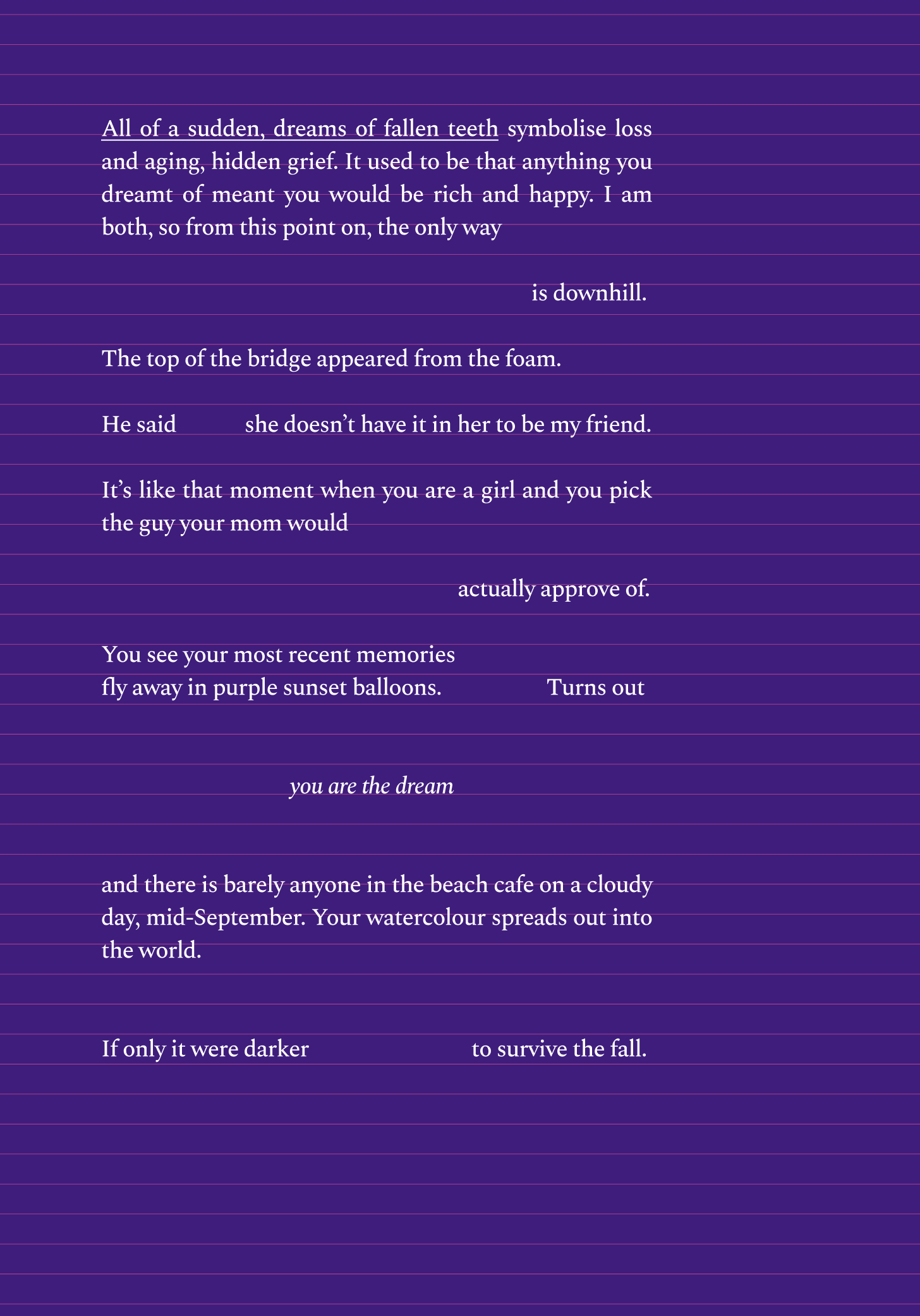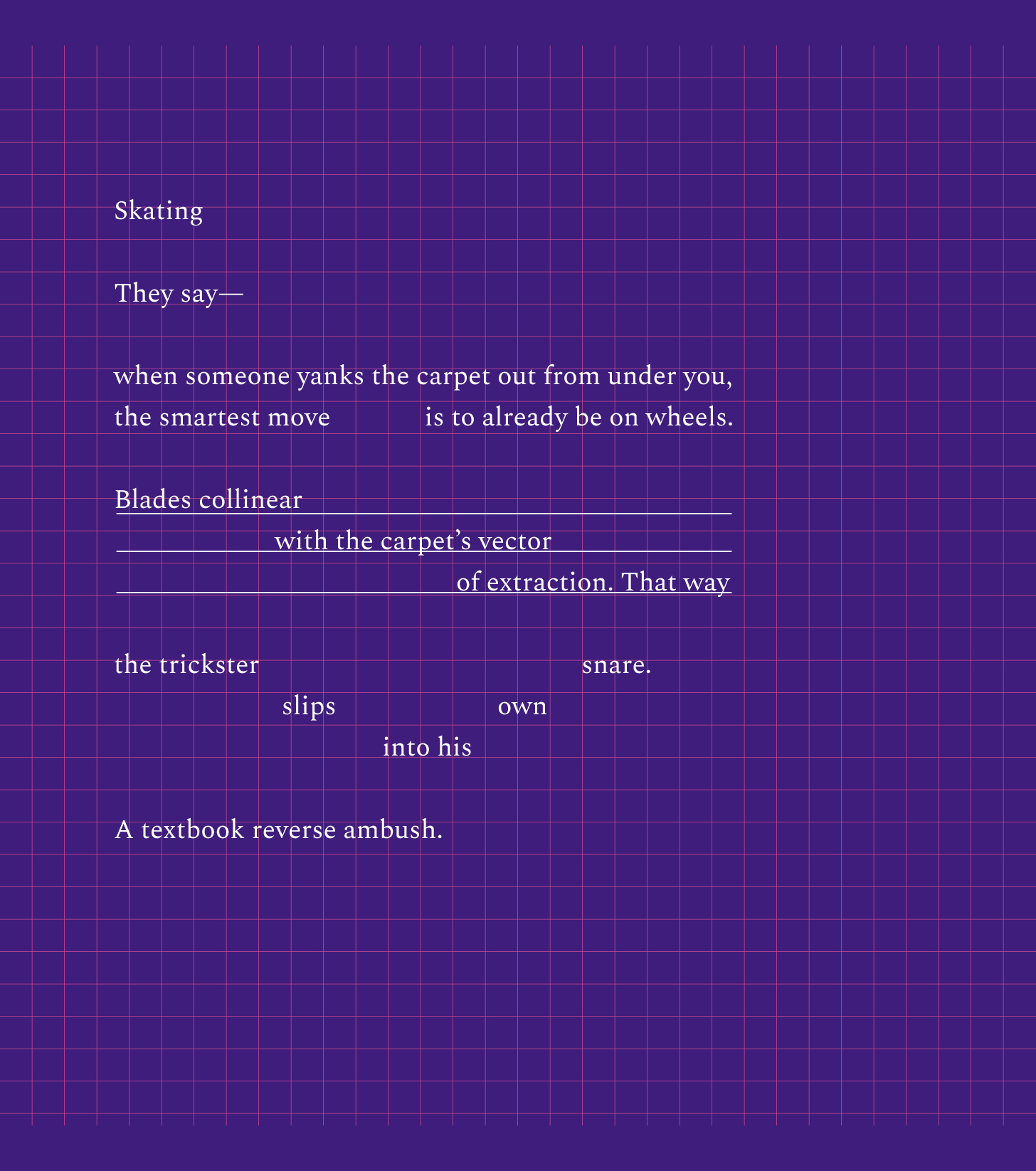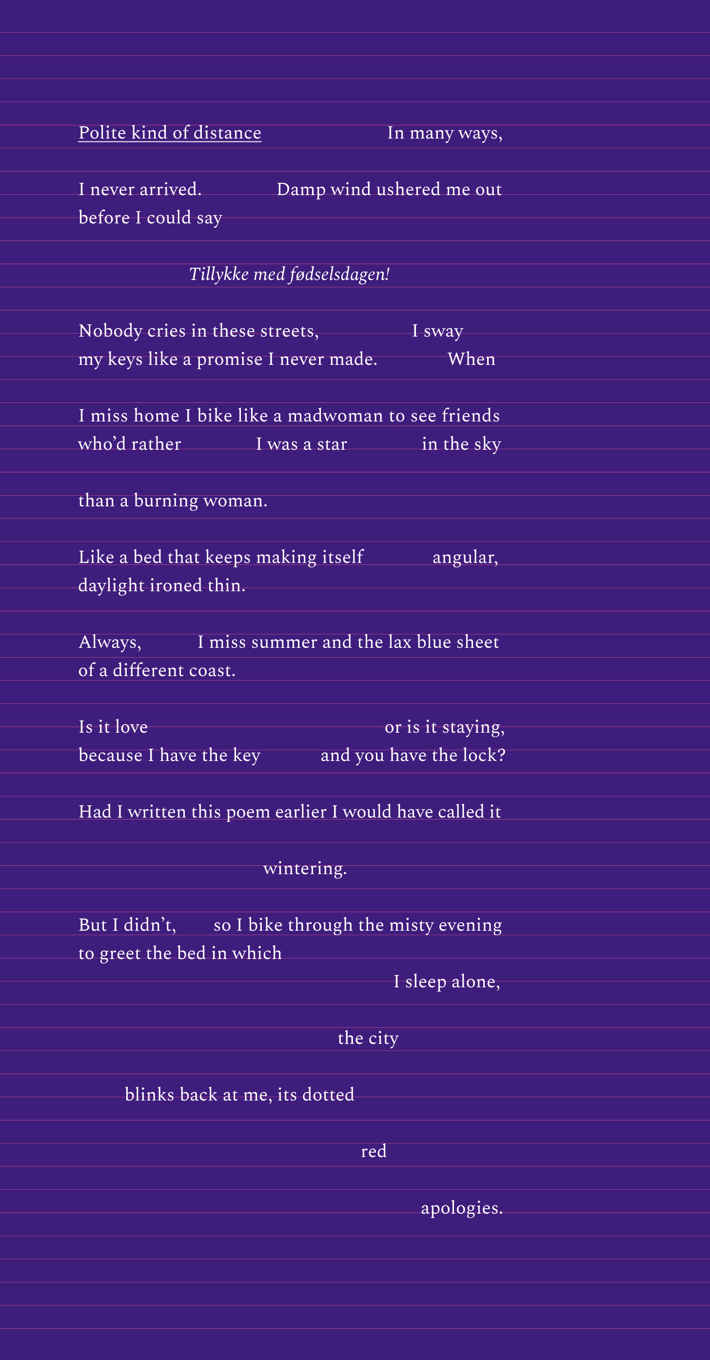 This one is far from it. It’s the kind of poem that holds one note until something inside quietly gives way.