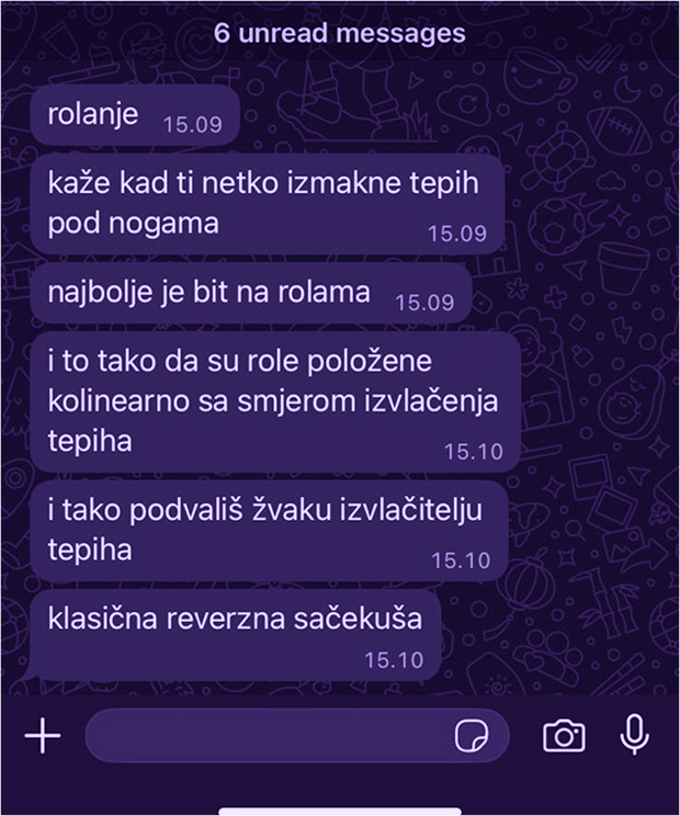 Actual messages my brother sent me. If you are both a Croatian and an English speaker, you may discern that the original manuscript later became the entirety of the poem. You may also be wondering if this means I stole the poem. The answer is-yes, indeed, I stole this poem from my brother. Please relax about it.