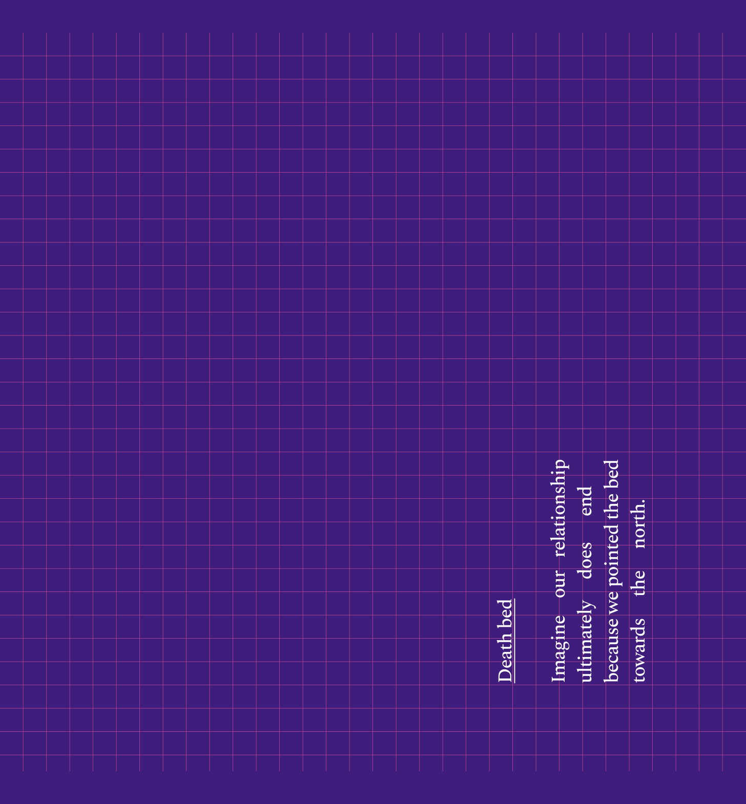 “Why would you be picking it up?” I said and wiggled out of the room in an attempt to hide my very own emotional unraveling.